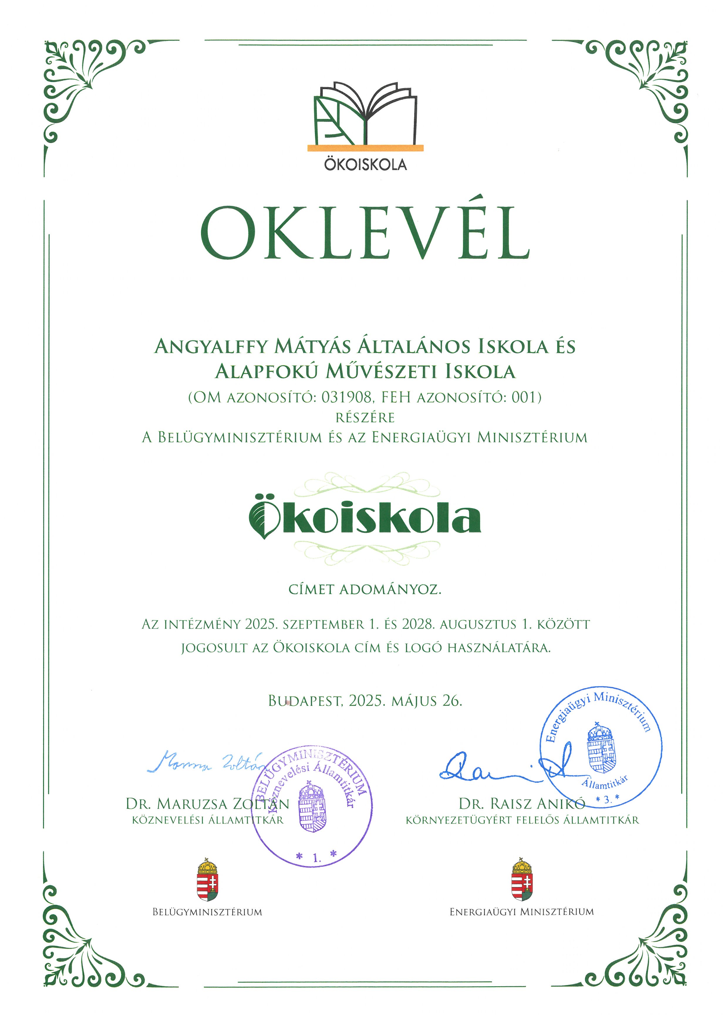 Iskolánk gyermekbarát, ugyanakkor rendre törekvő, világos rendszert kínál,